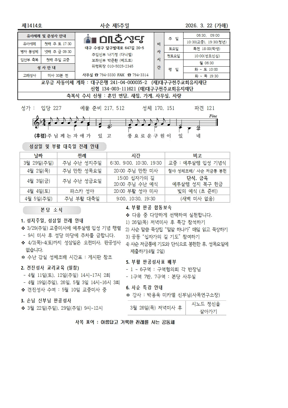 3월 22일 사순 제5주일 작성자매호성당|작성시간26.03.20|조회수178 목록 댓글 0 글자크기 작게가 글자크기 크게가 다음검색 현재 게시글 추가 기능 열기 북마크 공유하기 신고 센터로 신고 댓글 댓글 0 댓글쓰기 답글쓰기 댓글 리스트