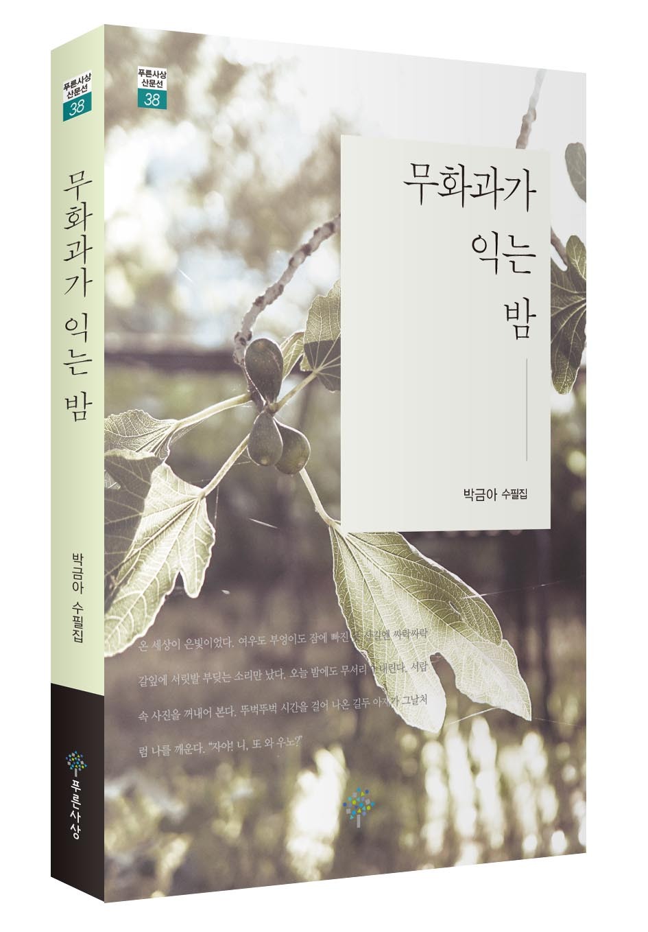 박금아 수필가의 첫 수필집 『무화과가 익는 밤』(푸른사상 산문선 38). 대상애를 지향하는 가족애의 의의와 가치를 견고한 구성으로 제시해주고, 토착어와 일상어의 활용으로 관념성을 극복하고, 감각적인 묘사로 밀도 높은 이미지를 창출하고 있다. 시적 언어와 탄탄한 문장으로 가족애를 재발견하고 대상애로 확장하는 박금아의 수필들은 깊은 울림을 준다. 2021년 5월 30일 간행.