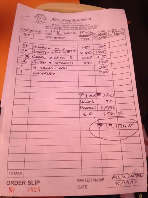 그걸 랍스터 1kg에 400페소인줄 착각한겁니다.. ㅠ