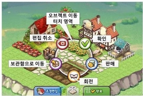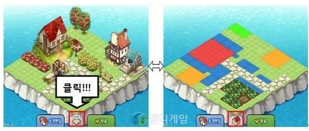 2. 마을화면에서 오브젝트 하나를 약 1~2초간 꾸욱 누르고 있으면 편집모드로 전환!!