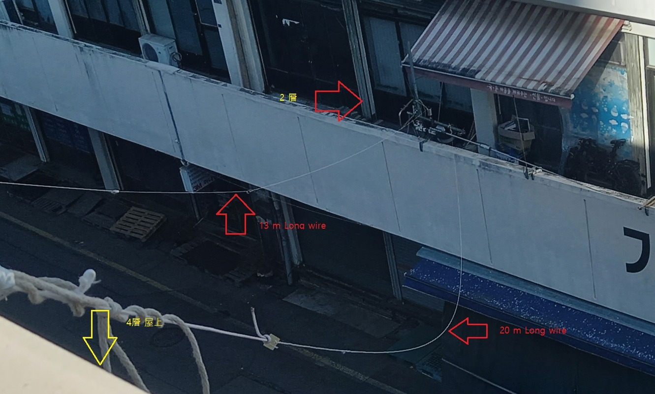 13 m 무조정 롱와이어 안테나 사진 자료를 올리겠습니다.
