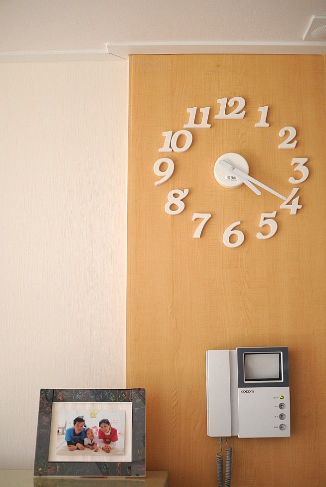 울집 거실시계(국민인테리어시계지요^^)와 지난달에 딸애가 어린이집서 만들어온 액자입니다^^