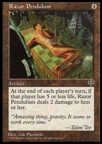 위 소설을 읽어보시면 아시겠지만, Mirage의 Razor Pendulum의 일러스트는 Poe의 구덩이와 추에 많은 영향을 받은 것으로 보입니다. 한 팔과 양 다리만 묶여있는 남자가 추에서 벗어나기 위해 필사적으로 발버둥치는 모습이 완전히 똑같습니다. (스포일러가 될까봐 어떻게 탈출하는지는 안쓸께요)