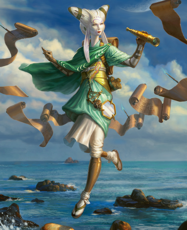 4. 이를 통해 타미요를 인지한 제이스는 인사를 한다. 타미요는 제이스가 플레인즈워커인만큼, 그의 정신이 붕괴된다면 다른 차원에도 피해를 입힐 수 있다고 주장하며 가능한 한 빨리 이곳을 떠나라고 한다. 하지만 제이스는 함께 아바신이라는 이니스트라드의 문제를 해결하자고 한다. 그러나 타미요는 제이스에게 아바신에 대해 모르는 것이 너무나도 많다고 하며, 본인은 문제를 해결하는 것이 아니라 관찰하고 기록하기 위해 왔다고 말하며 제이스의 제안을 거부한다.