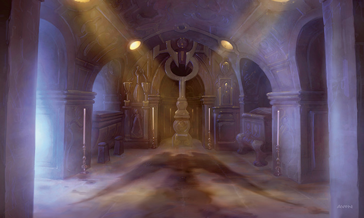 6. 어쩌다 발견한 조각상. 수많은 귀족들이 제단에 묶인 천사 한 명을 둘러싸고, 천사의 은색 피를 마시는 의식을 보여주는 장면이다. 혹시 이것이 바로 이니스트라드에서 흡혈귀가 탄생한 순간인가?