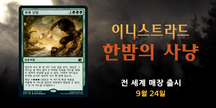 | 안녕하세요 Mr.M 입니다. 위자즈에서 해즈브로 코리아를 통해 9월24일 전세계 출시될 '이니스트라드 한밤의 사냥' 프리뷰 카드 1종을 카페에 공유해 주셨습니다. 감사드립니다. 자~ 이제 즐겨봅시다!! ------------------ Hello this is Master Magi Thank Wizard of Coast and Hasbro Korea for sharing/offering new preview cards in Innistrad: Midnight Hunt to our community. Let's enjoy !! |