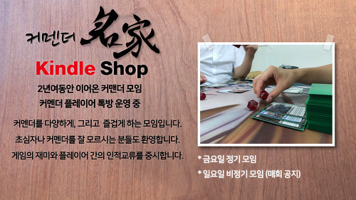 상시 이벤트 "모든 참가자들은 DCI 넘버를 통해 매장 캐쥬얼 이벤트에 공식 등록되며 플레인즈 워커 포인트를 얻습니다." 참가비 없음 Commander 다인전/개인전 Brawl 다인전/개인전 *댓글을 다신 참가자들만이 다음의 행운상을 굴릴 기회를 갖습니다. *만원 이상의 매장 상품을 구매한 참가자들만이 다음의 행운상을 굴릴 기회를 갖습니다. |