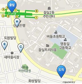 신천역 3번 출구에서 길을 따라 쭉 내려 오시면 됩니다.