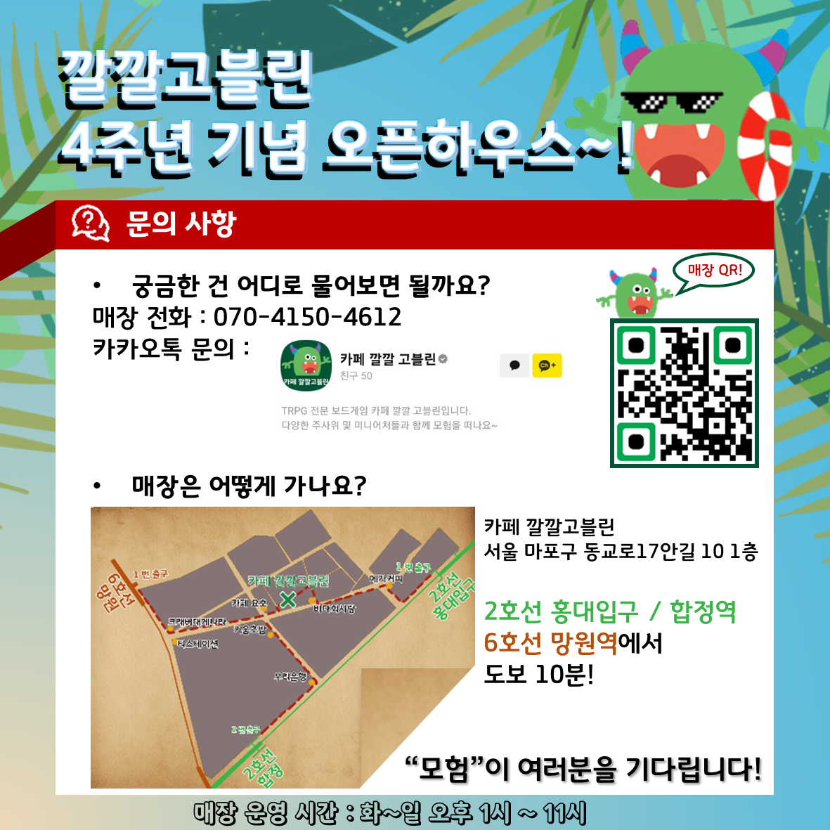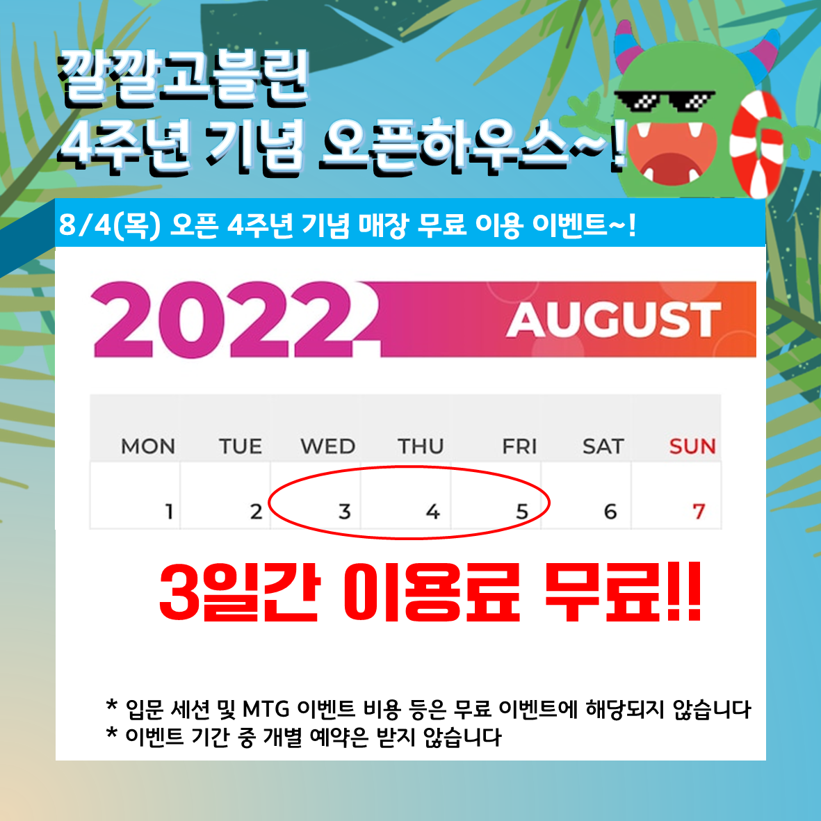 더불어 깔깔고블린 4주년 기념 매장 무료 이용 이벤트를 개최합니다.