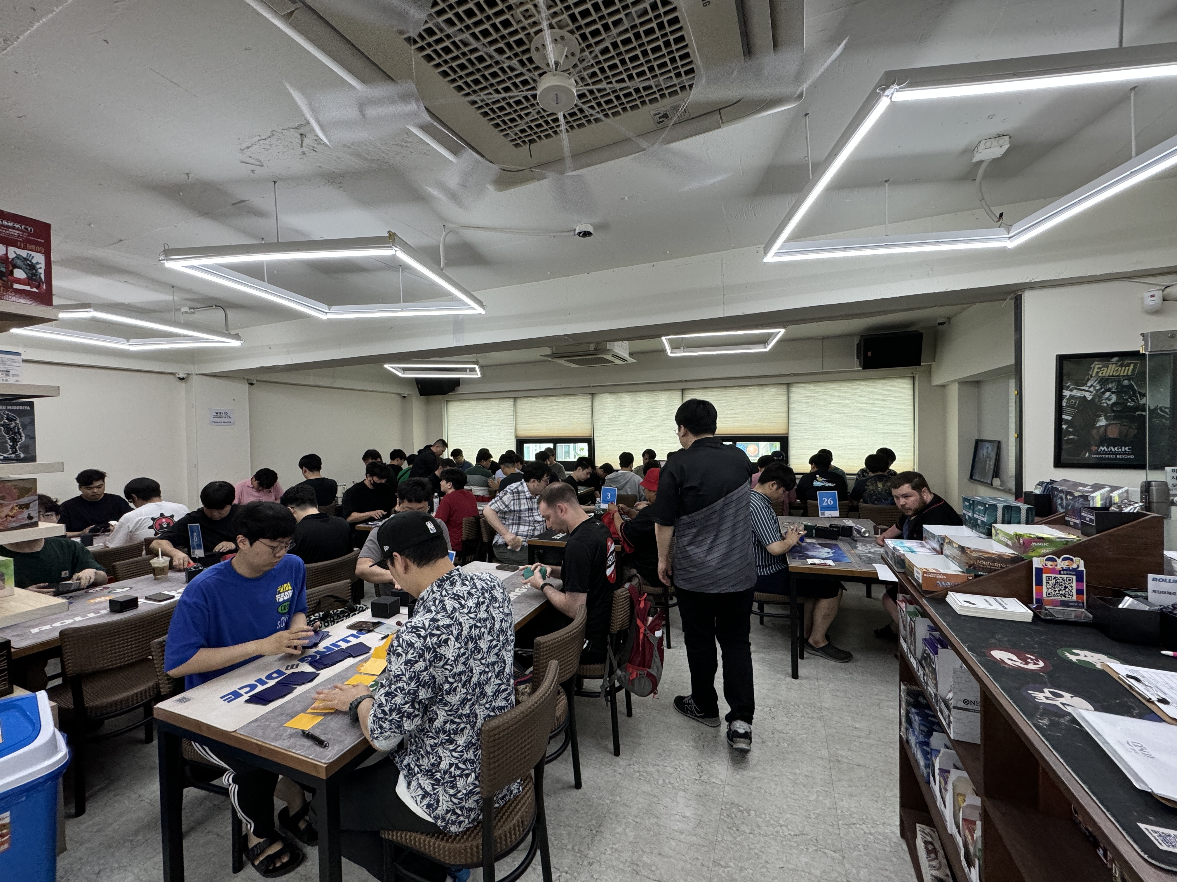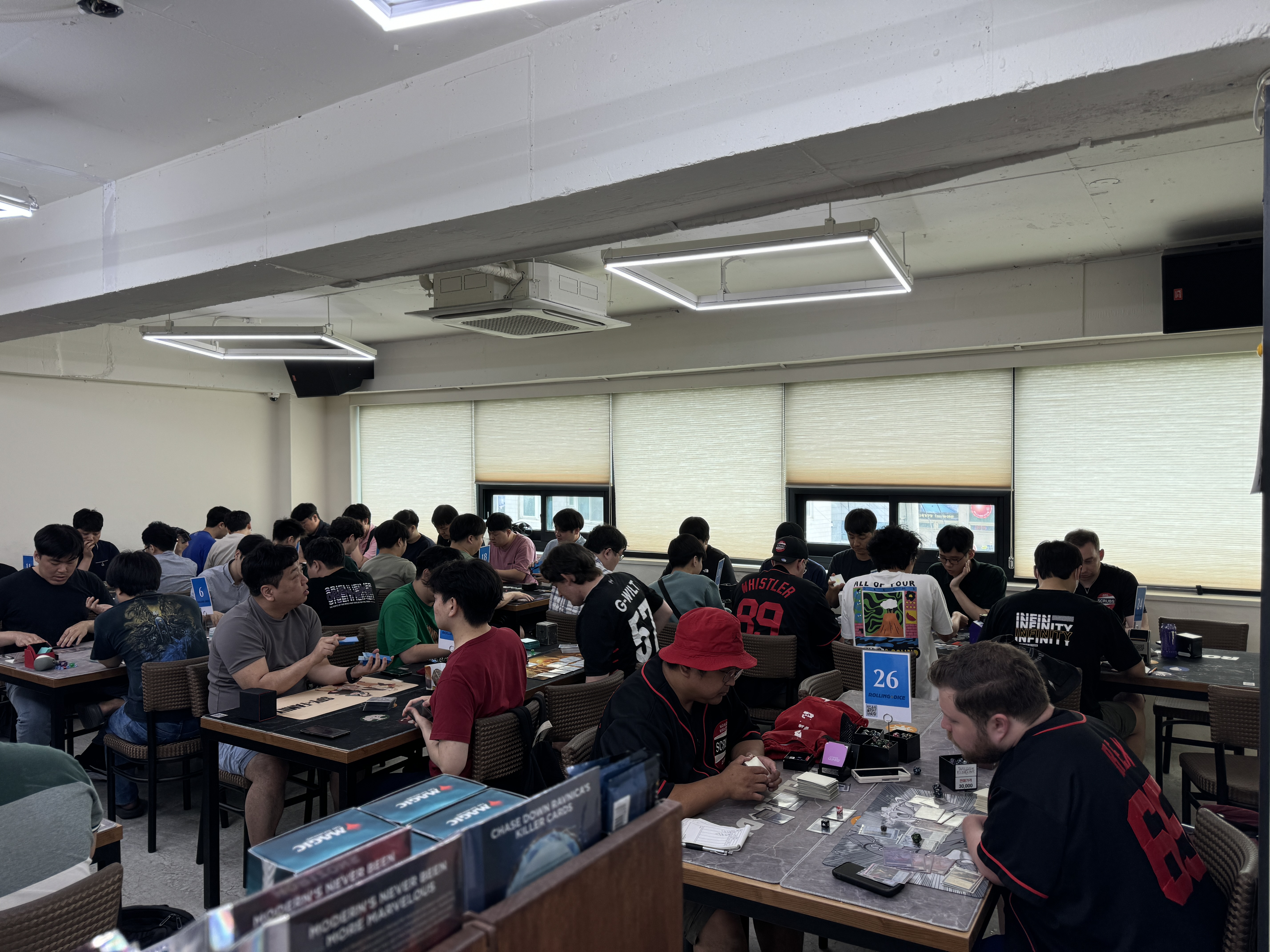 이번 이벤트에 참가해주신 총 플레이어분은 50분입니다. 예선은 총 6라운드로 구성된 스위스라운드방식 토너먼트로 진행되었으며. 결승전에 진출한 2인의 플레이어는 10월에 있을 한/일 챔피언스컵 대회의 진출권을 얻게 됩니다. 두번째 사진에 찍힌 김인환 심판의 도움으로 진행되었습니다. 매번 수고해주셔서 감사드립니다.