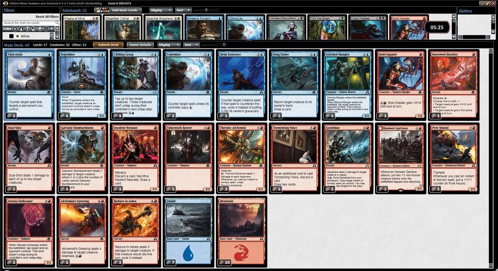 작성자Eirene 작성시간 16.08.20 공상님이 말씀하신대로 초반에 컨셉을 너무 빨리 정하셔서 적색의 파워한 생물을 쉽게 넘기신게 아쉽네요^^ 개인적으로는 발화 연금술사가 컨셉을 정해버릴정도로 파워카드는 아닌거 같습니다. 성가퀴도 한장이면 충분할거같구요 ㅎㅎ