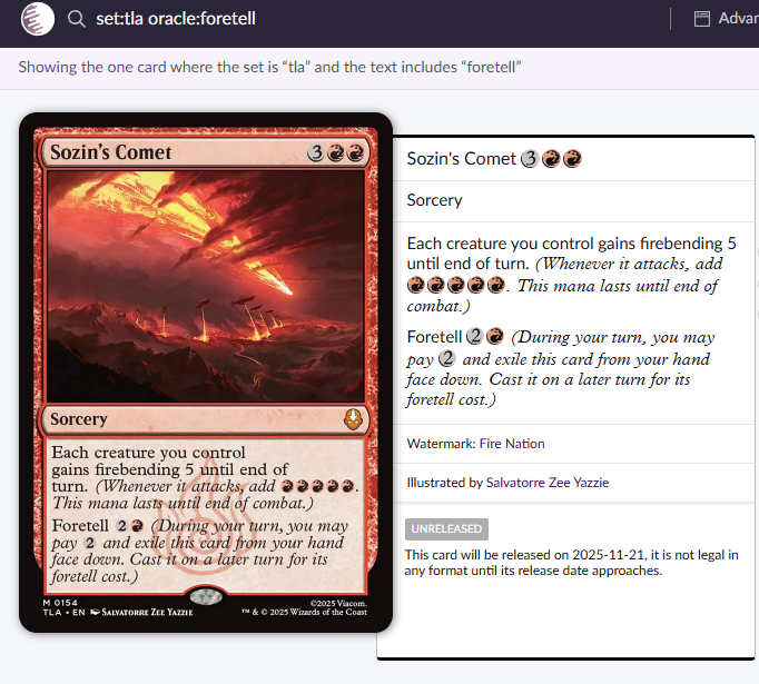 2025년 스탠다드 6개 블럭의 마지막을 장식하는 아바타: 아앙의 전설의 릴리즈입니다.