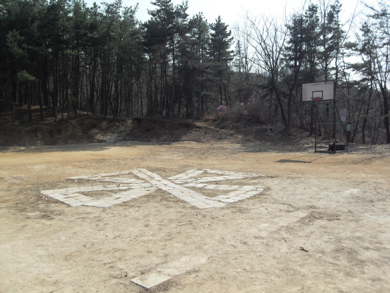 좌측 길로 무덤을 끼고 돌아가면 농구대와 배드민턴장이 있는 넓은 헬기장에 도착을 하게 된다.