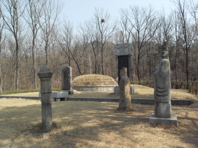 좌측 코너에 작은 생태 연못이 있고, 길 건너에는 문,무인석이 갖쳐진 잘 정돈된 옛 정승의 묘 1기가 있다.