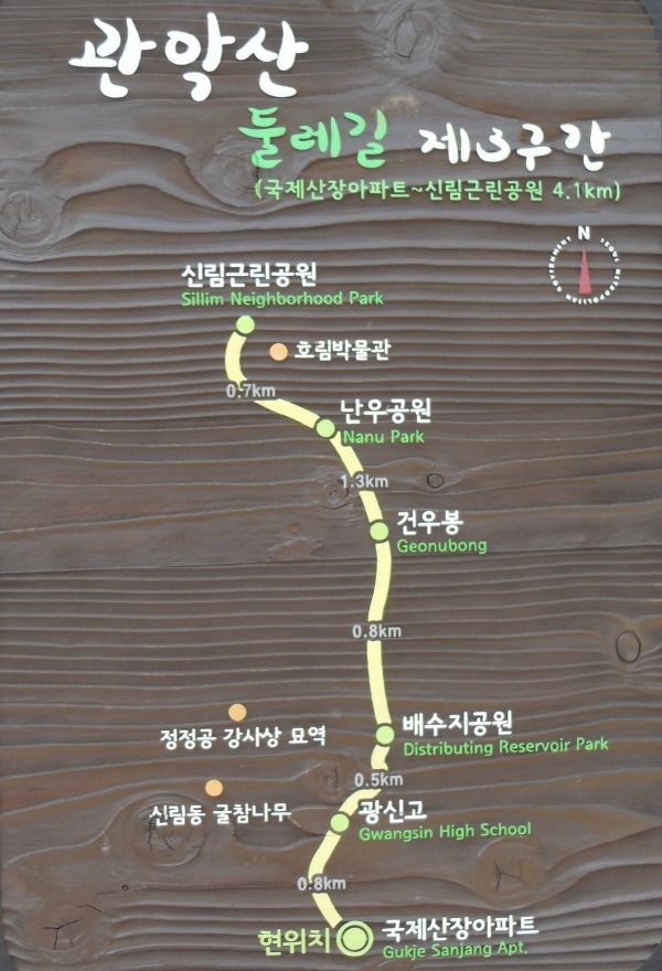 관악산 등산로입구 우측에 둘레길 제2구간 안내도가 있다.