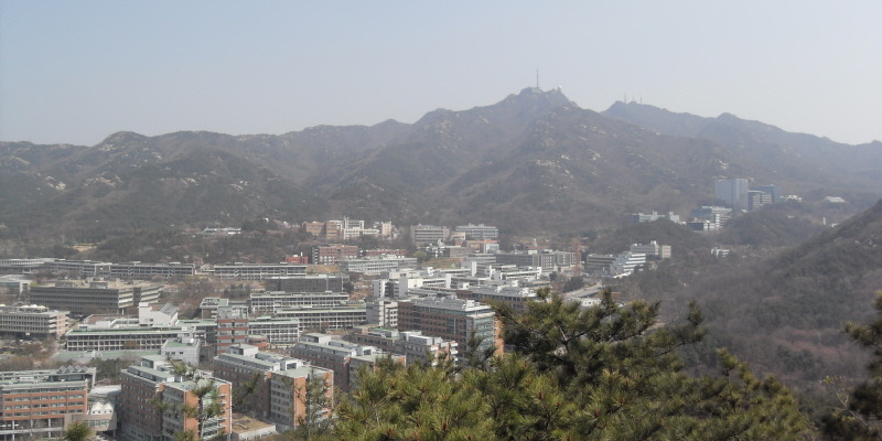 ▲ 돌산능선 전망바위에서 조망된 서울대 캠퍼스 전경과 관악산 일대