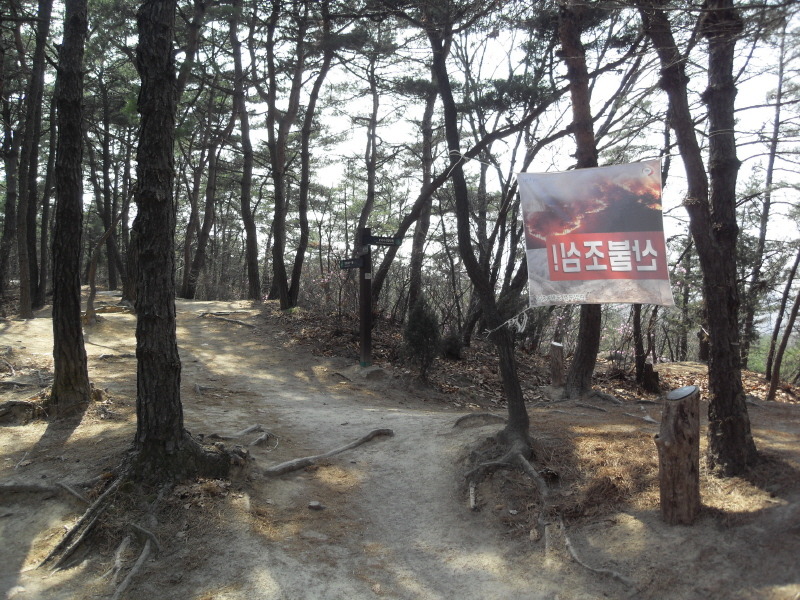 돌산능선 갈림길의 이정표와 돌산능선 접근로(사진 下)