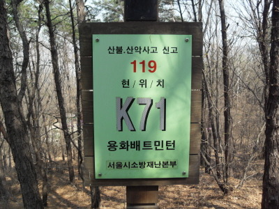 헬기장을 가로 지르면 헬기장 끝에 위치표시 '현위치 K73 약수암위 헬기장'이 있다.