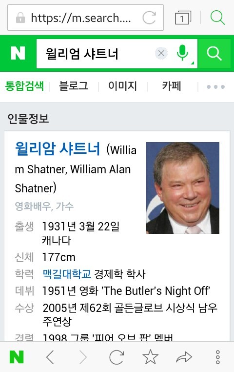 저는 윌리엄 샤트너의 최근 모습을 보스톤 리걸을 통해서 보았는데, 커크 선장인줄은 전혀 몰랐네요 ㅎㅎ