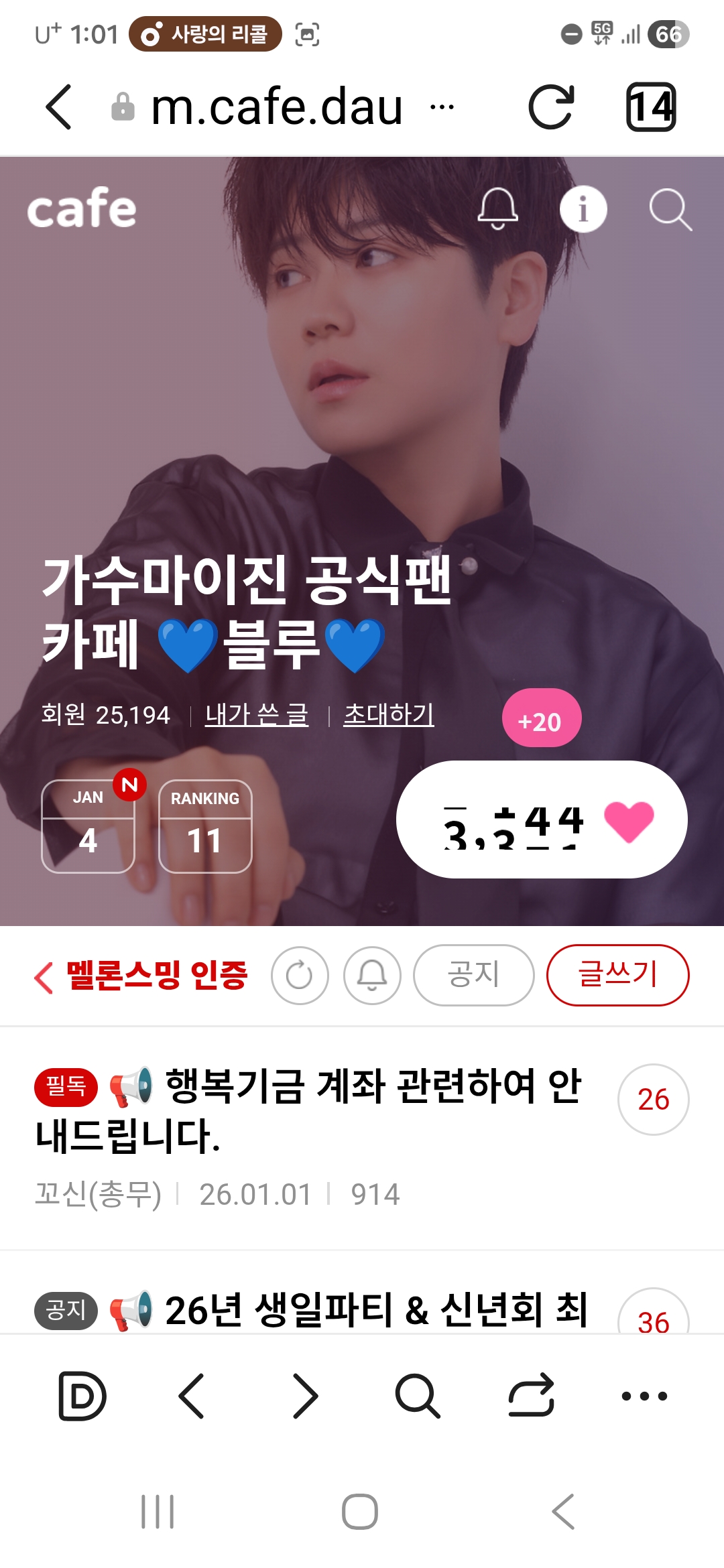 마이진 가수님 01시 하트 작성자주사랑귀염(경기)|작성시간26.01.04|조회수1 목록 댓글 0 글자크기 작게가 글자크기 크게가 다음검색 현재 게시글 추가 기능 열기 북마크 공유하기 신고 센터로 신고 댓글 댓글 0 댓글쓰기 답글쓰기 댓글 리스트
