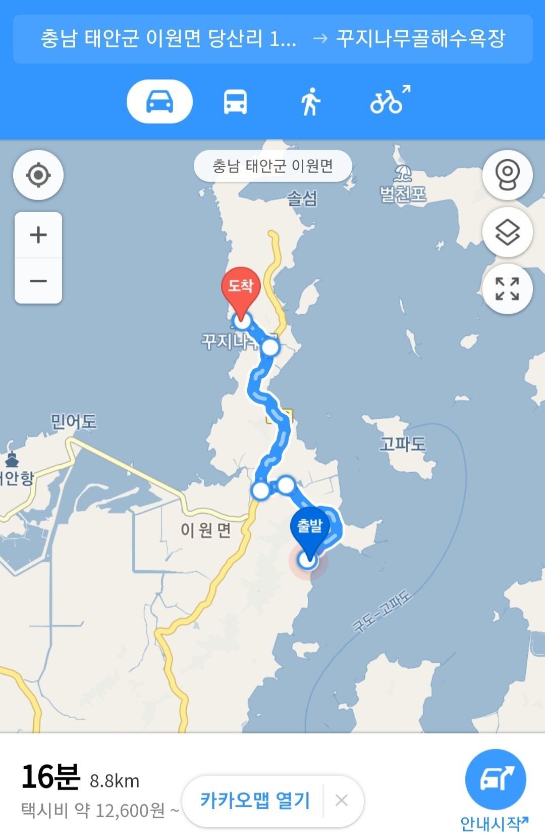 꾸지나무 해수욕장까지 8.8km