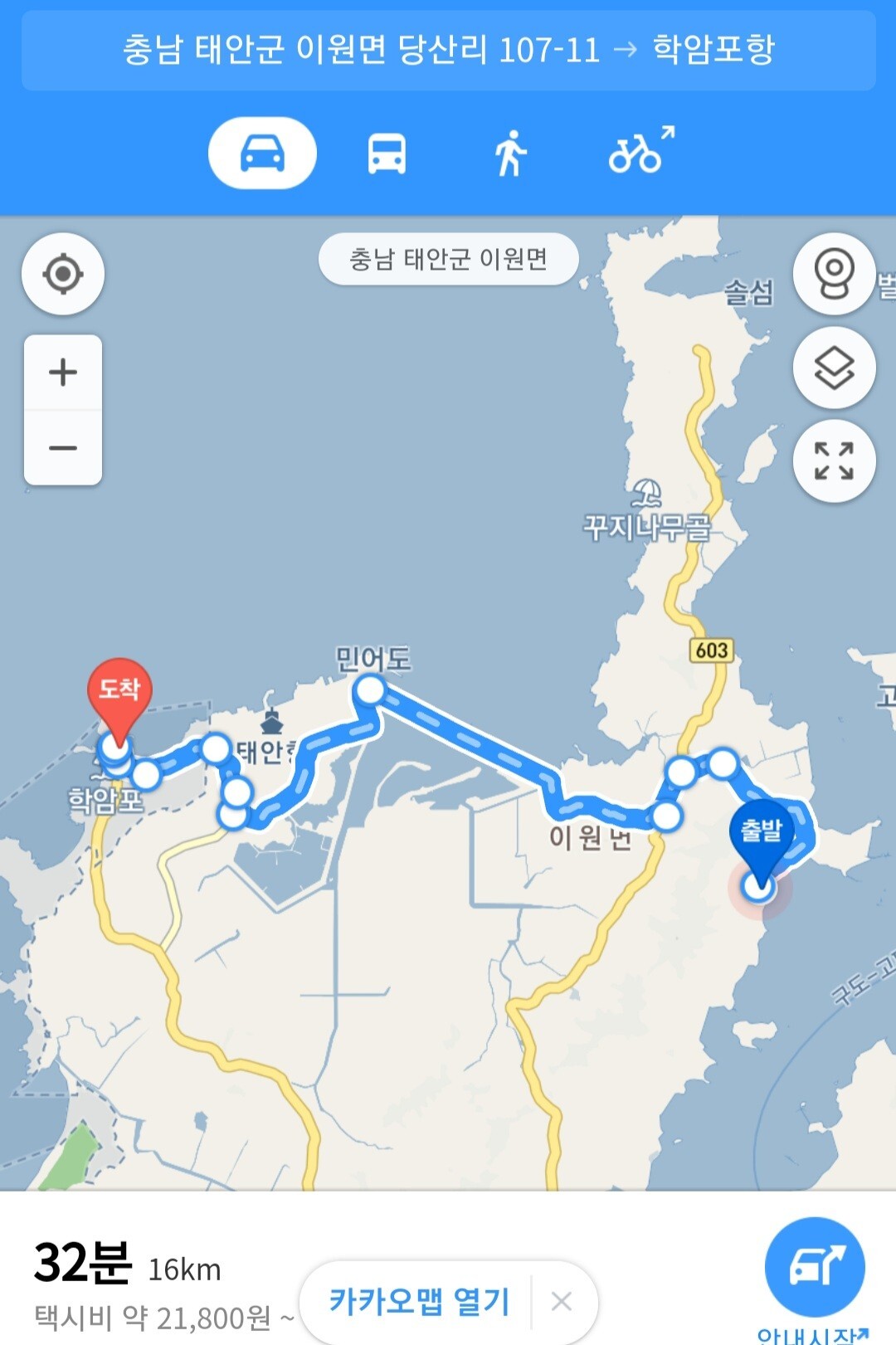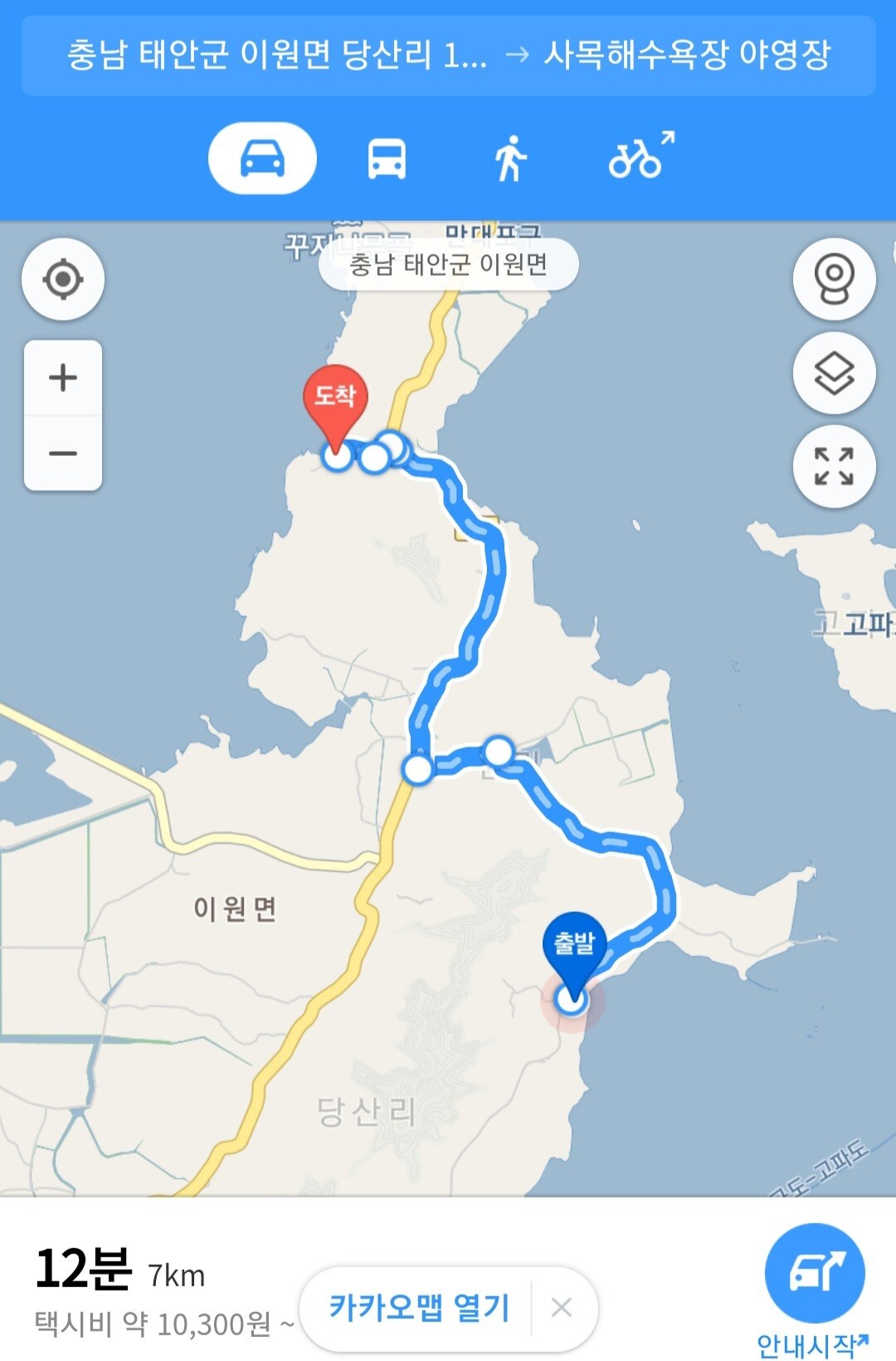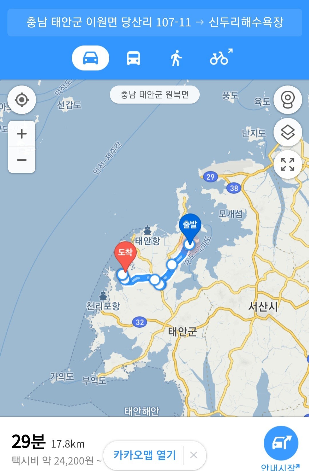 태안군 이원면에서 서산시 대산읍까지 1시간 30분 거리가 불과 5분으로 단축