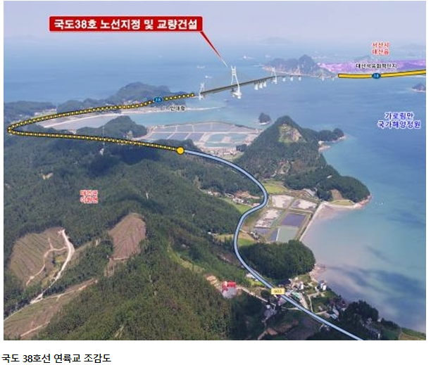 가로림만 연륙교(총연장 2.65km) 국도 38호선이 국토교통부의 제 2차 국가 도로망 종합계획에 신규 노선으로
