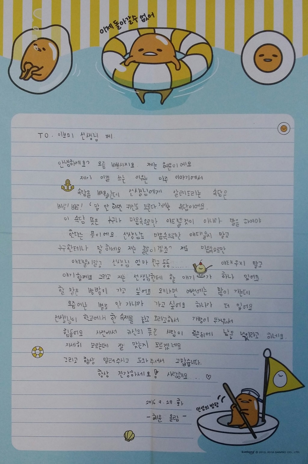 그럼 건강하게 잘 지내. 다음에 또 편지할게.