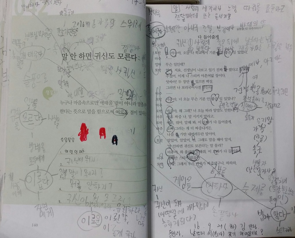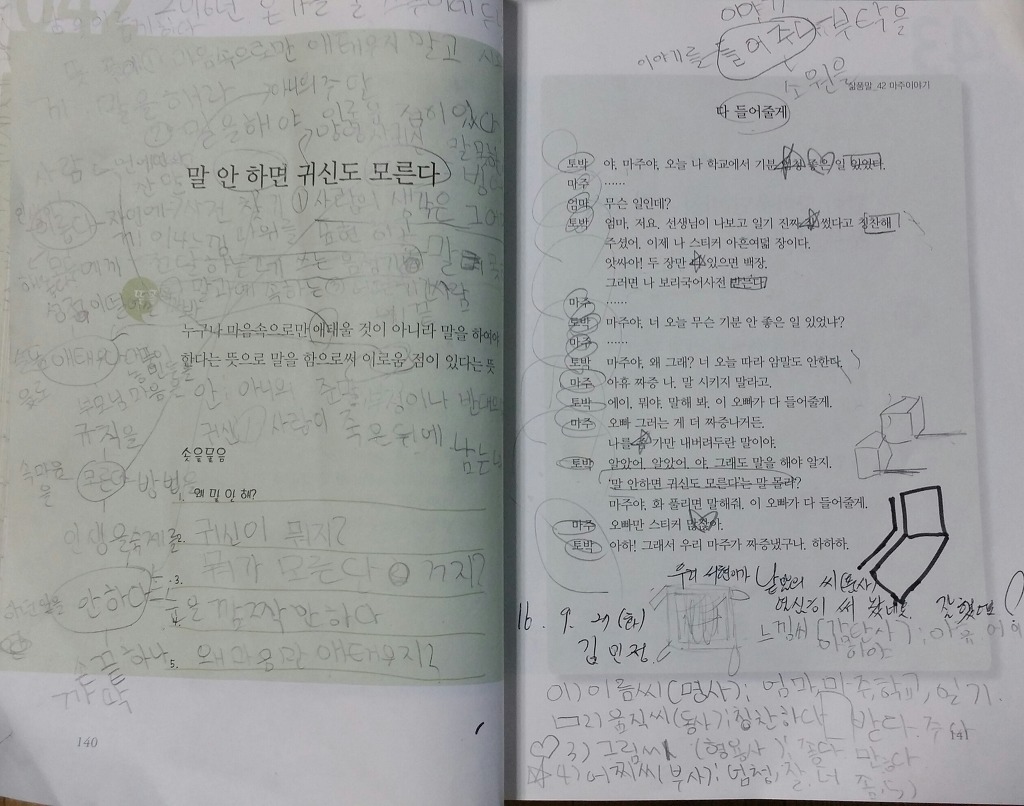 2) 마주이야기 속에서 삶품말을 찾아 밑줄이나 동그라미를 친다.