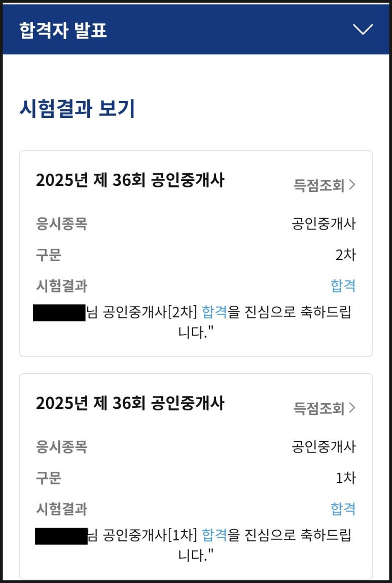 지난 11월 26일, 36회 공인중개사 합격자 발표 보셨나요?