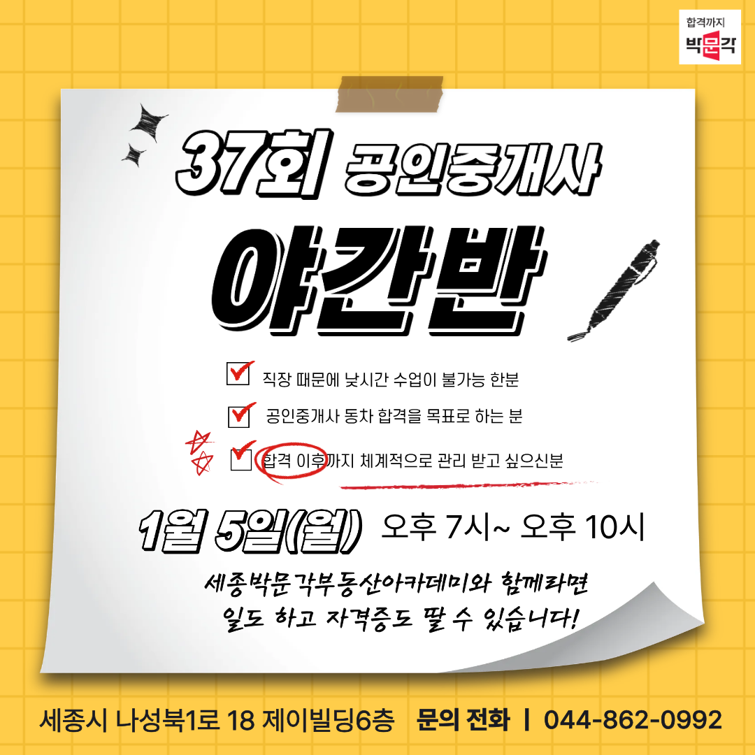 👉1월 5일(월) 개강! 공인중개사 기초이론반& 야간반 상담 신청