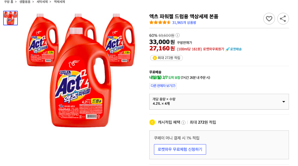 액츠 파워젤 드럼용 액상 4.12L*4개 작성자인천논현동88|작성시간22.02.06|조회수93 목록 댓글 0 글자크기 작게가 글자크기 크게가 오늘 60% 연휴마지막 세일 날이라고해서 뭐살까 둘러보다가 세제 쟁였습니다.싸길래 공유해요. https://coupa.ng/cbZ6z3 다음검색 현재 게시글 추가 기능 열기 북마크 공유하기 신고 센터로 신고 댓글 댓글 0 댓글쓰기 답글쓰기 댓글 리스트