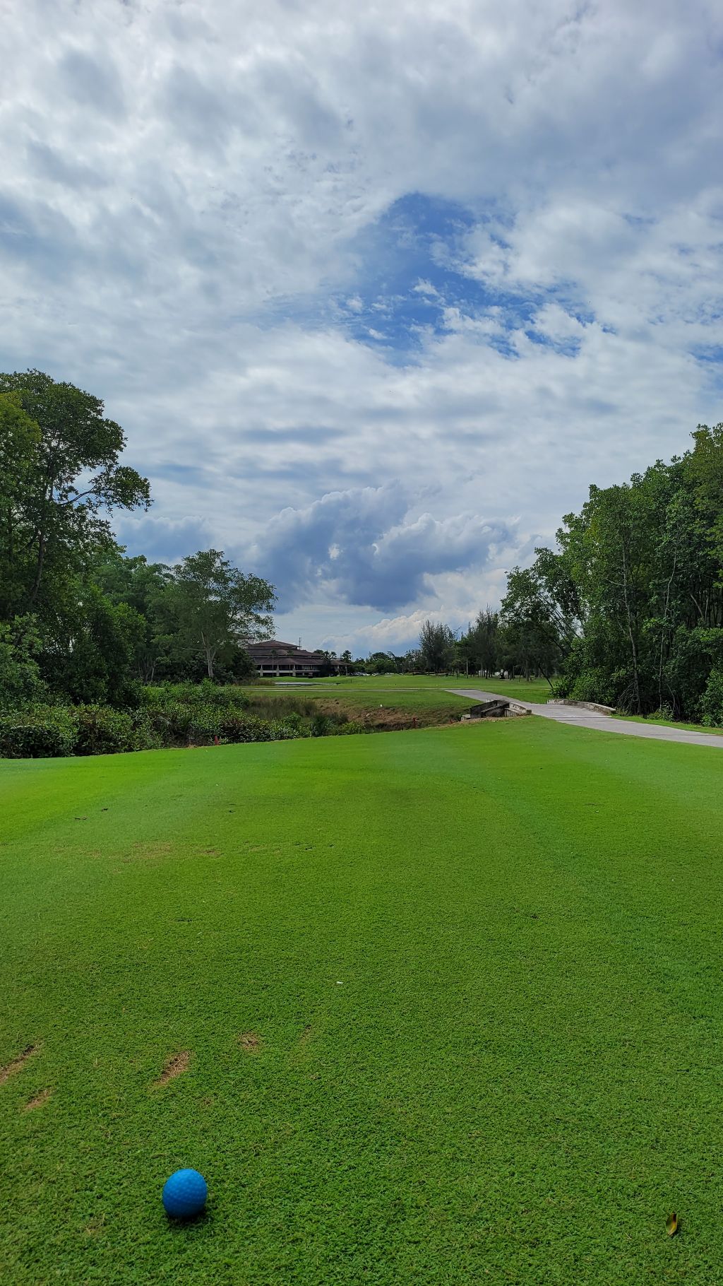 9번홀 페어웨이에서본 클럽하우스 전경.