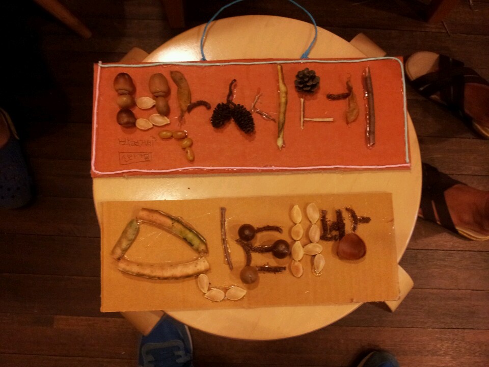 자연물로 자신이 원하는 재료를 고집하며 문패를 만드는 모습이 좋았습니다. 인태가 요즘엔 활동을 즐기는 것 같아서 보기 좋았습니다. 인권이는 그날도 문패를 가지고 가지 않아서 아쉬웠습니다. 며칠 뒤 어머님이 오셔서 가지고 갔습니다.