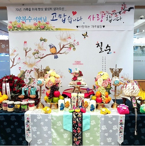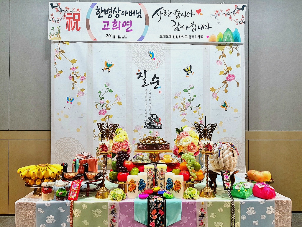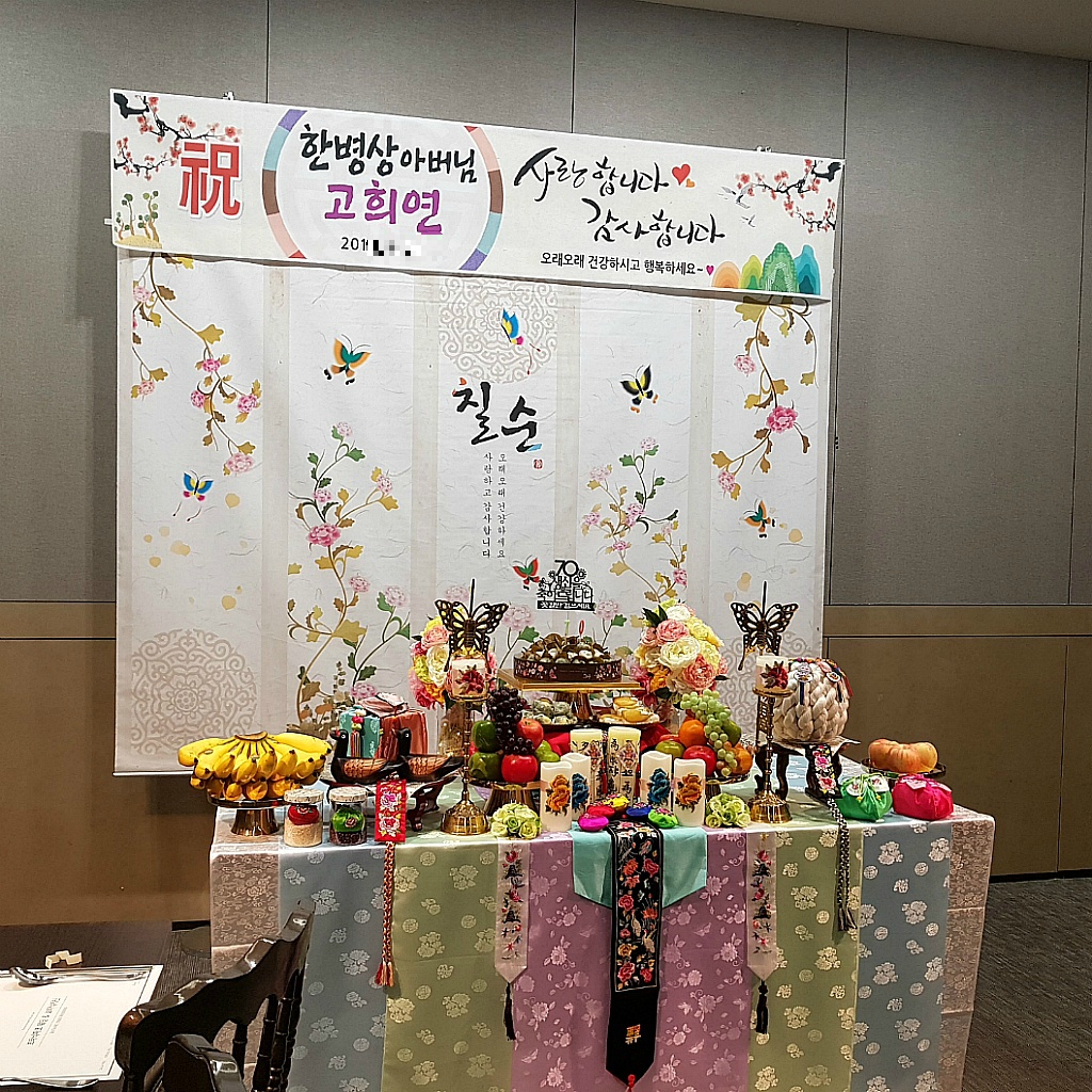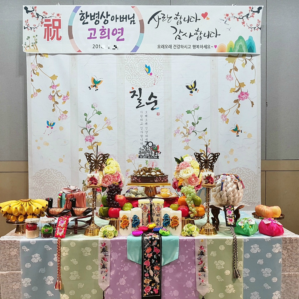 소규모 칠순잔치 대여 출장 진행으로 진행한 아버님의 (환갑, 팔순 ) 칠순상차림대여 진행으로 간편하게 진행했어요