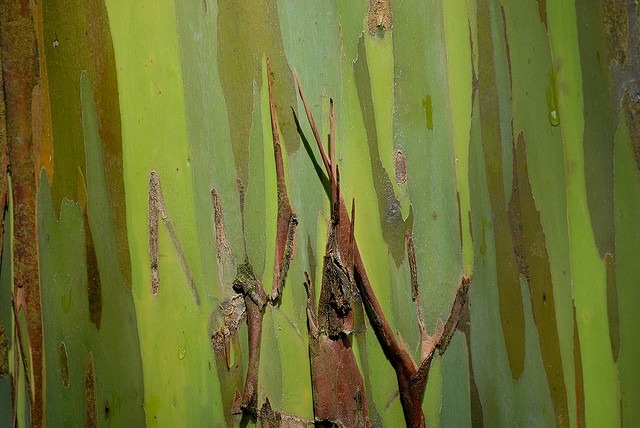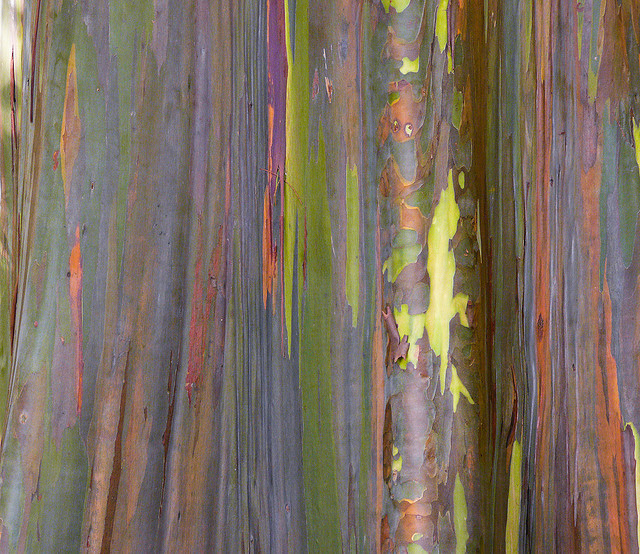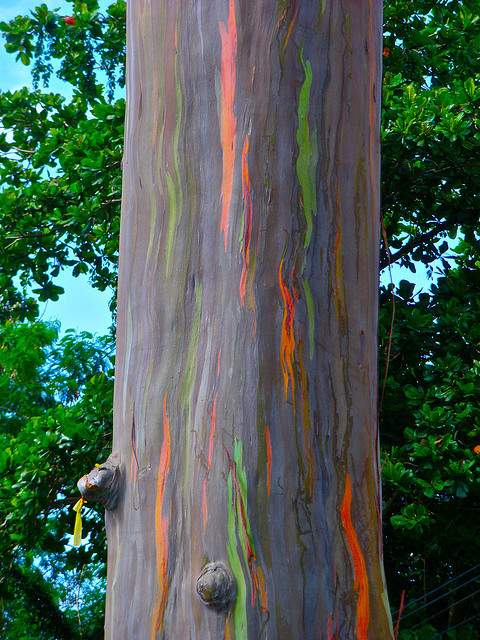이 유칼립투스는 도금낭과의 상록 교목으로서 아름답고 신비하기까지 한 무지개 색깔의 나무이다. 누군가 페인트 칠을 해 놓은 듯한 화려한 색상은 자연이 만들어 낸 것이다.
