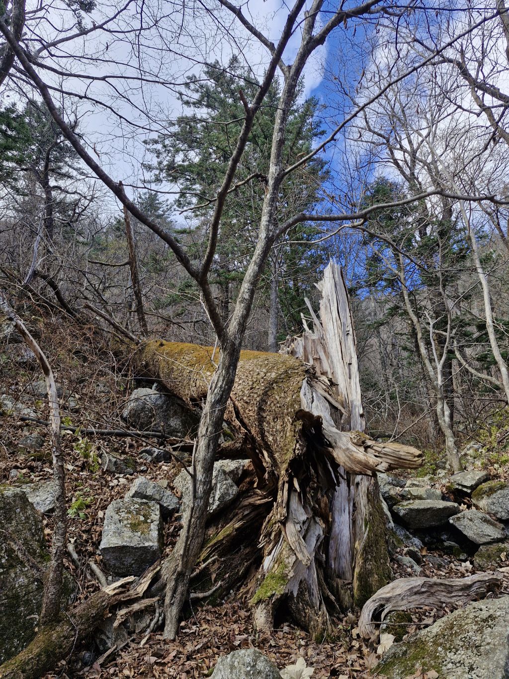 바닥이 성애가 얼어 얼마나 미끄러운지 하얀서리가 내린 바위를 조심히 밟고 오른다.