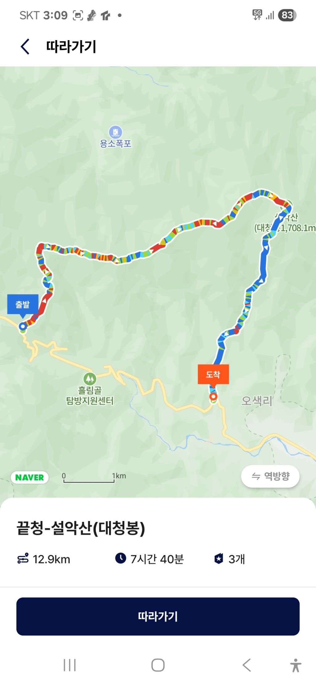 그렇게 남설악탐방소까지 절뚝이며 하산을 완료한다.