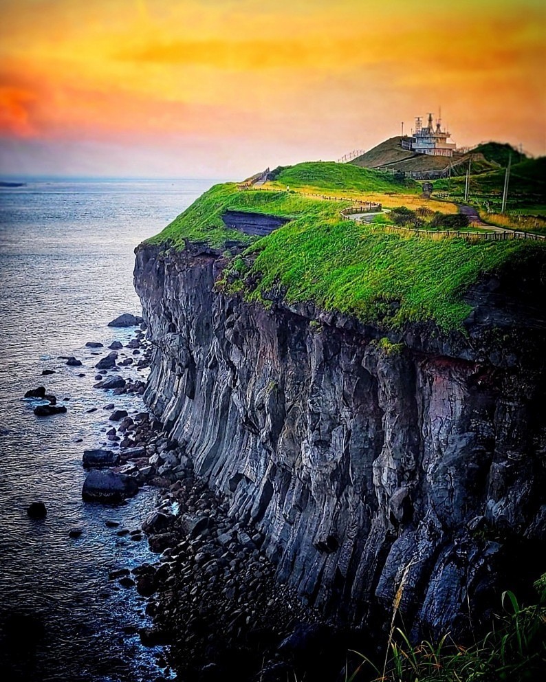100m정도 이동하면 기암절벽3 포인터 입니다. 가파도와 통신대쪽으로 찍어시면 됩니다. 이곳은 제가 가장 좋아하는 절벽포인터로 노을시간때 찍어보시면 웅장하고 아슬아슬한 풍경을 연출해주어 "제주의 아이슬란드"라고 합니다