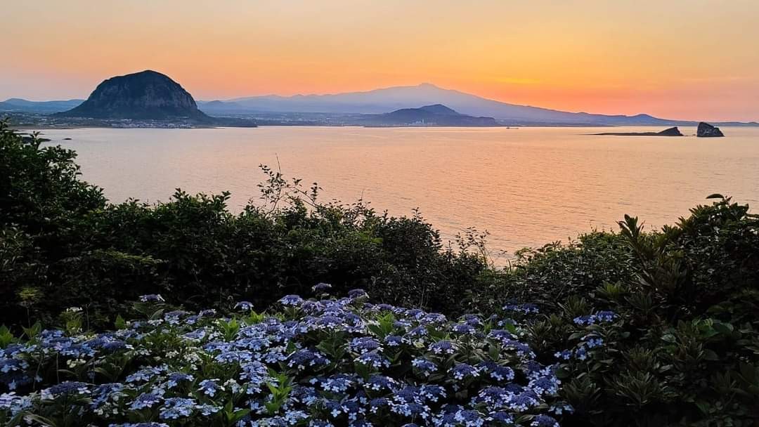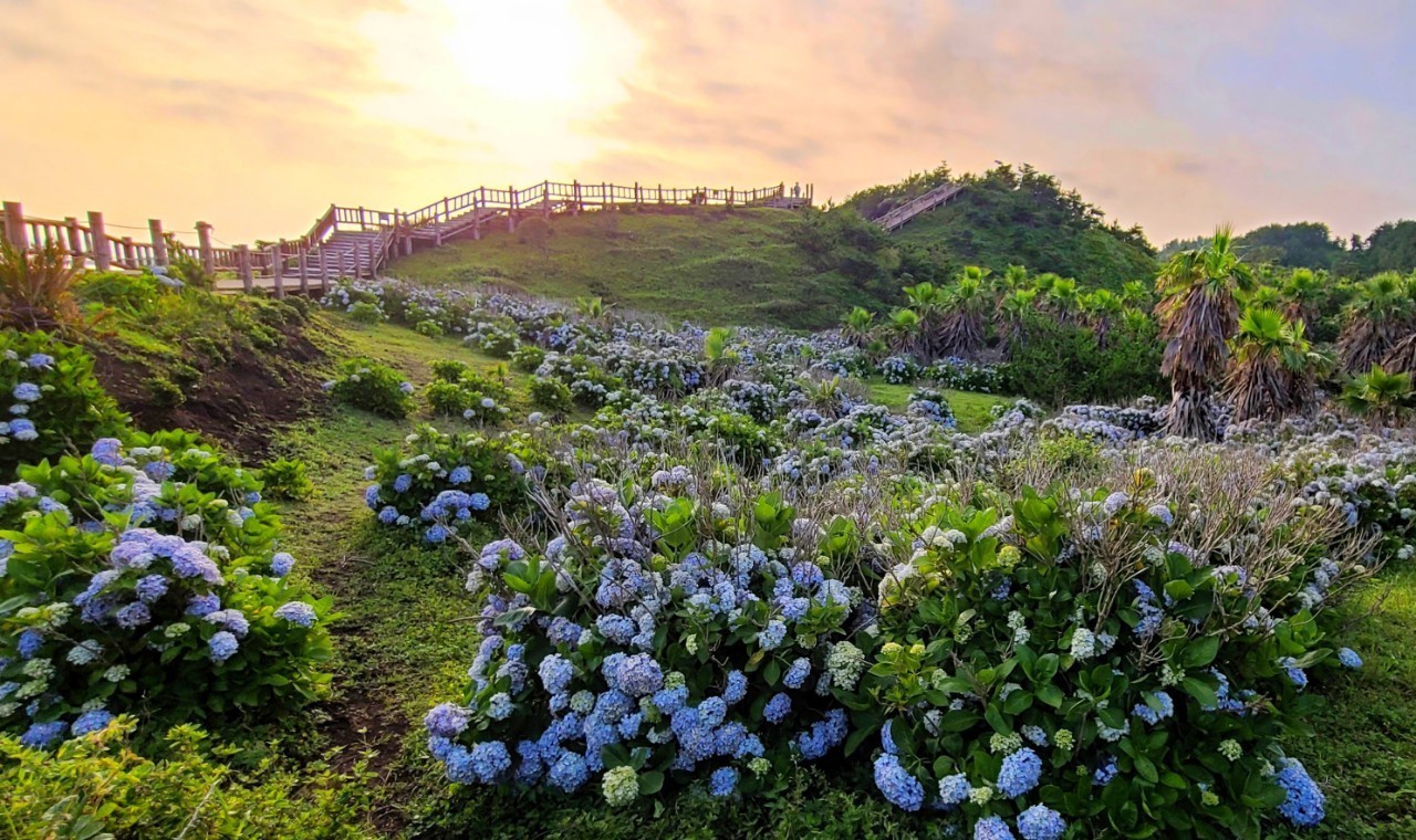 300m 정도 이동을 하시면 전망대 아래 수국군락지가 있습니다. 7월말경에 노을과 함께 찍어시면 좋습니다