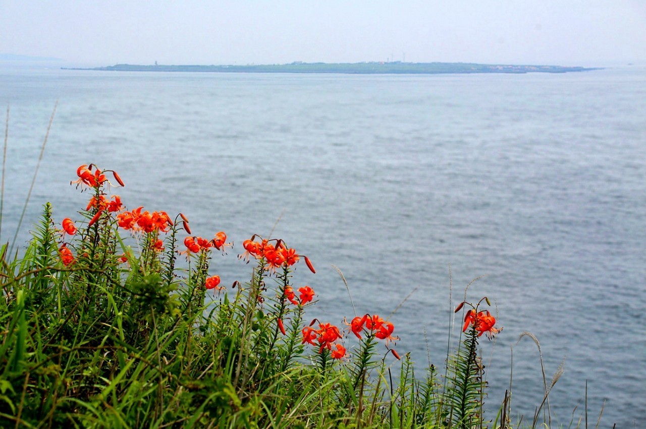 전망대 수국포인터에서 조금 이동하여걷다 보면 바다를 배경으로 참나리군락지가 여러곳이 있습니다. 8월초에 꽃을 볼수있으니 참고 하시기 바랍니다.