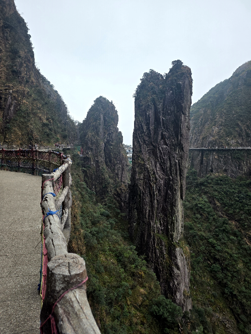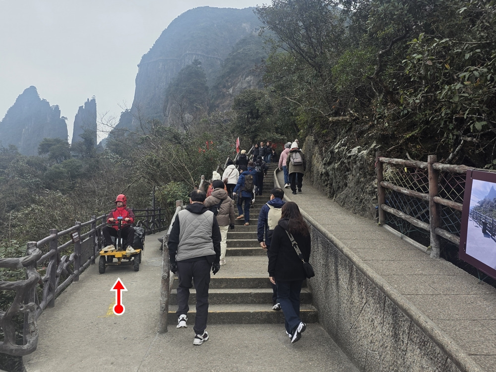 중국에서도 ‘최초 무장애 ▲ 산악형 관광지’로 손꼽힌다. 오르막이나 계단이 거의 없고, 케이블카 + 엘리베이터와 에스컬레이터를 통해 8부 능선 해발 1,600m대 벼랑 잔도를 부담 없이 둘러볼 수 있도록 잘 조성되어 있다. 자연은 웅장하지만, 사람에게는 다정한 산이다.