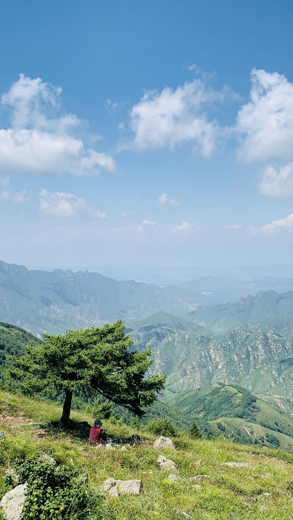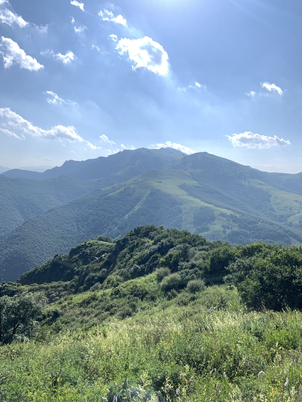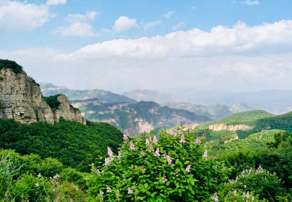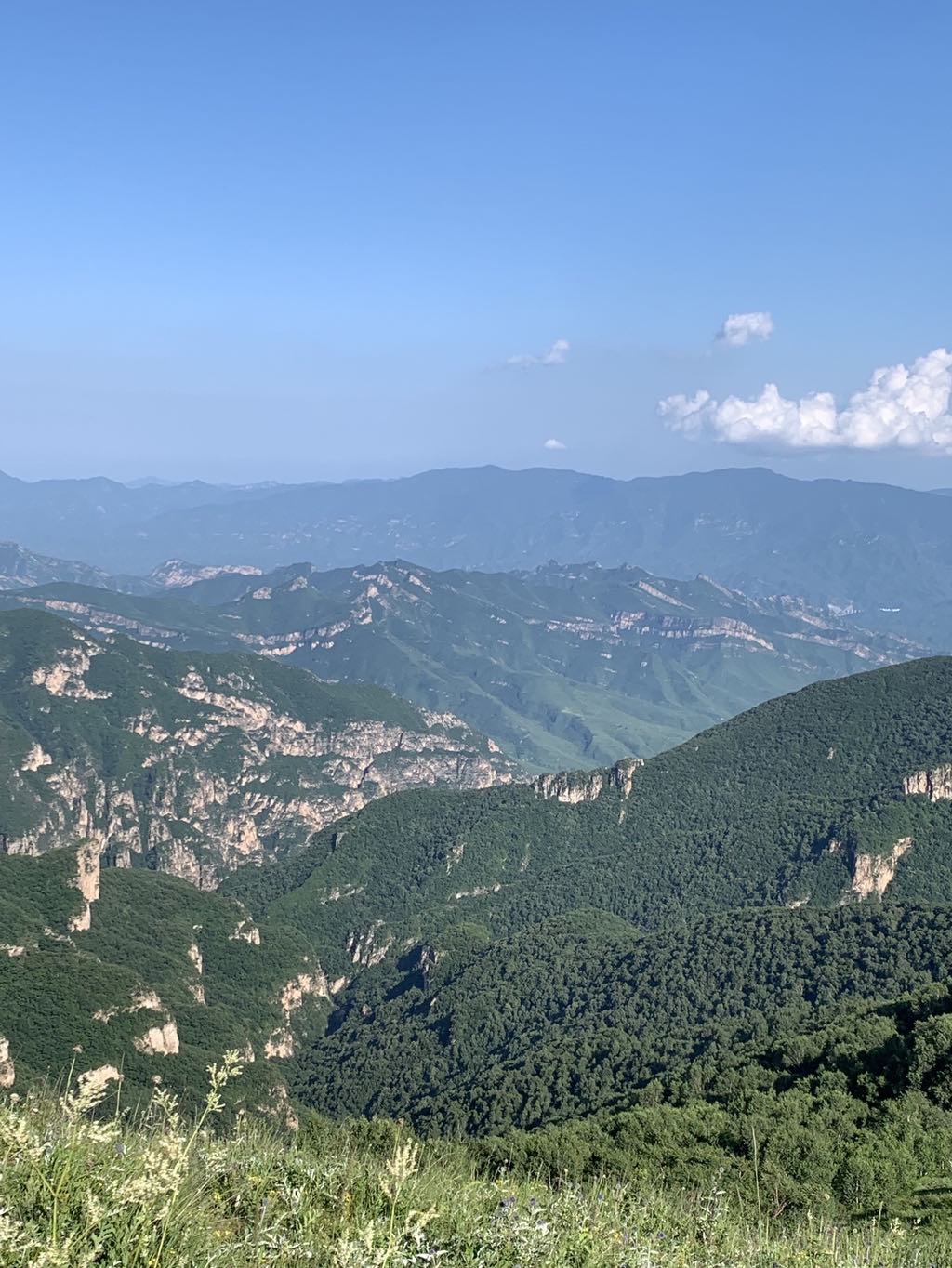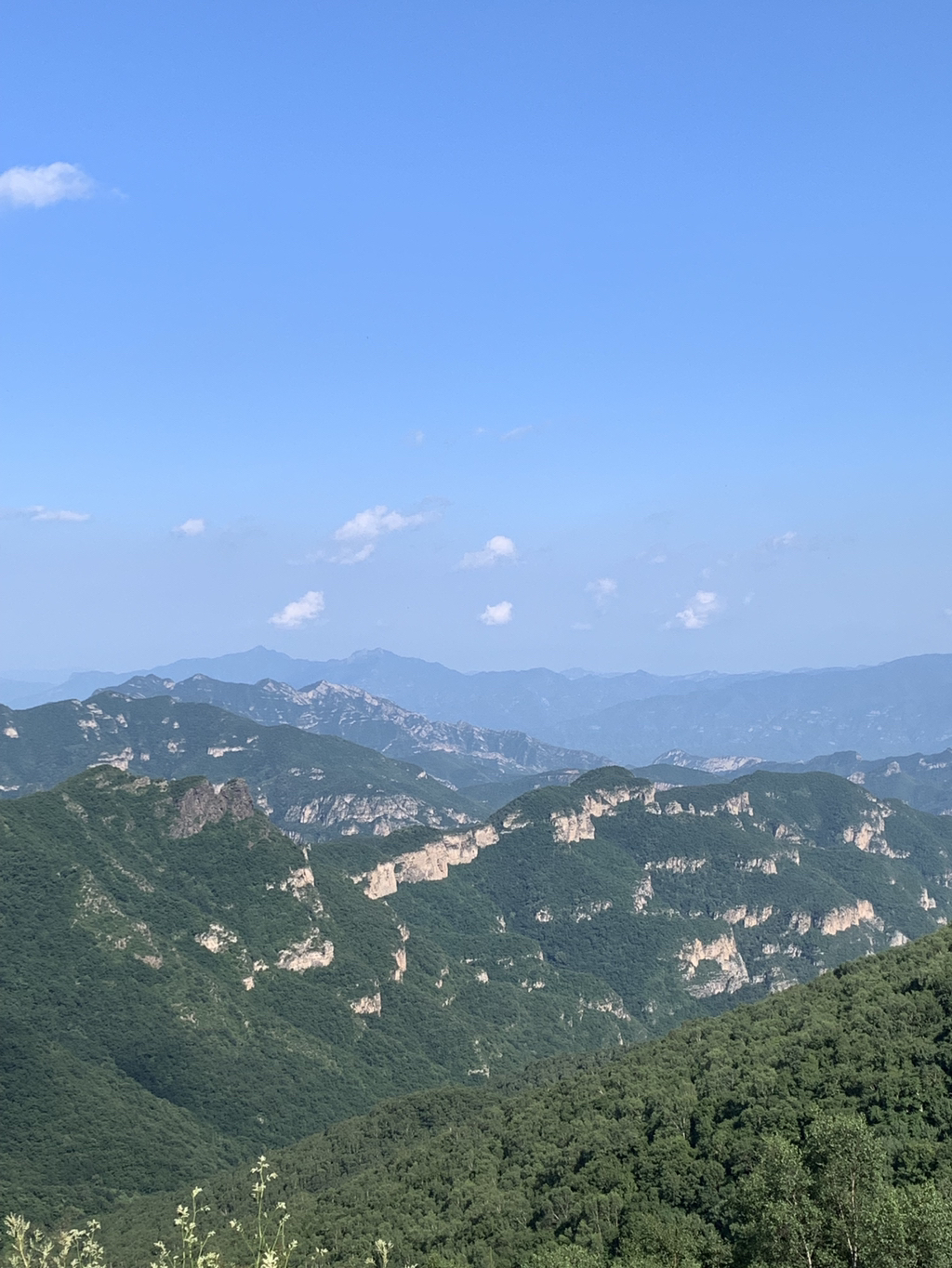 黄花梁在右边北京最高峰东灵山,左边龙门涧风景区后边北灵山等高峰。
