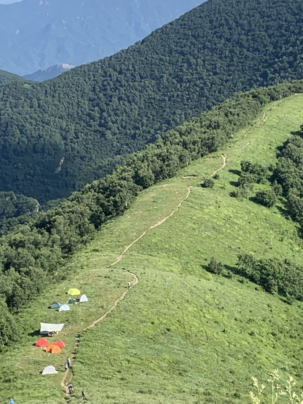 등산코스에는 능선을 따라서 고산초원과 자작나무숲 소나무숲 야생화이원령장성유적지 등이 있습니다.