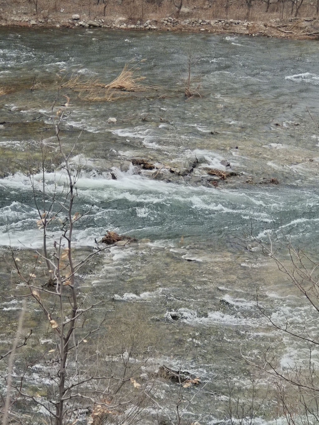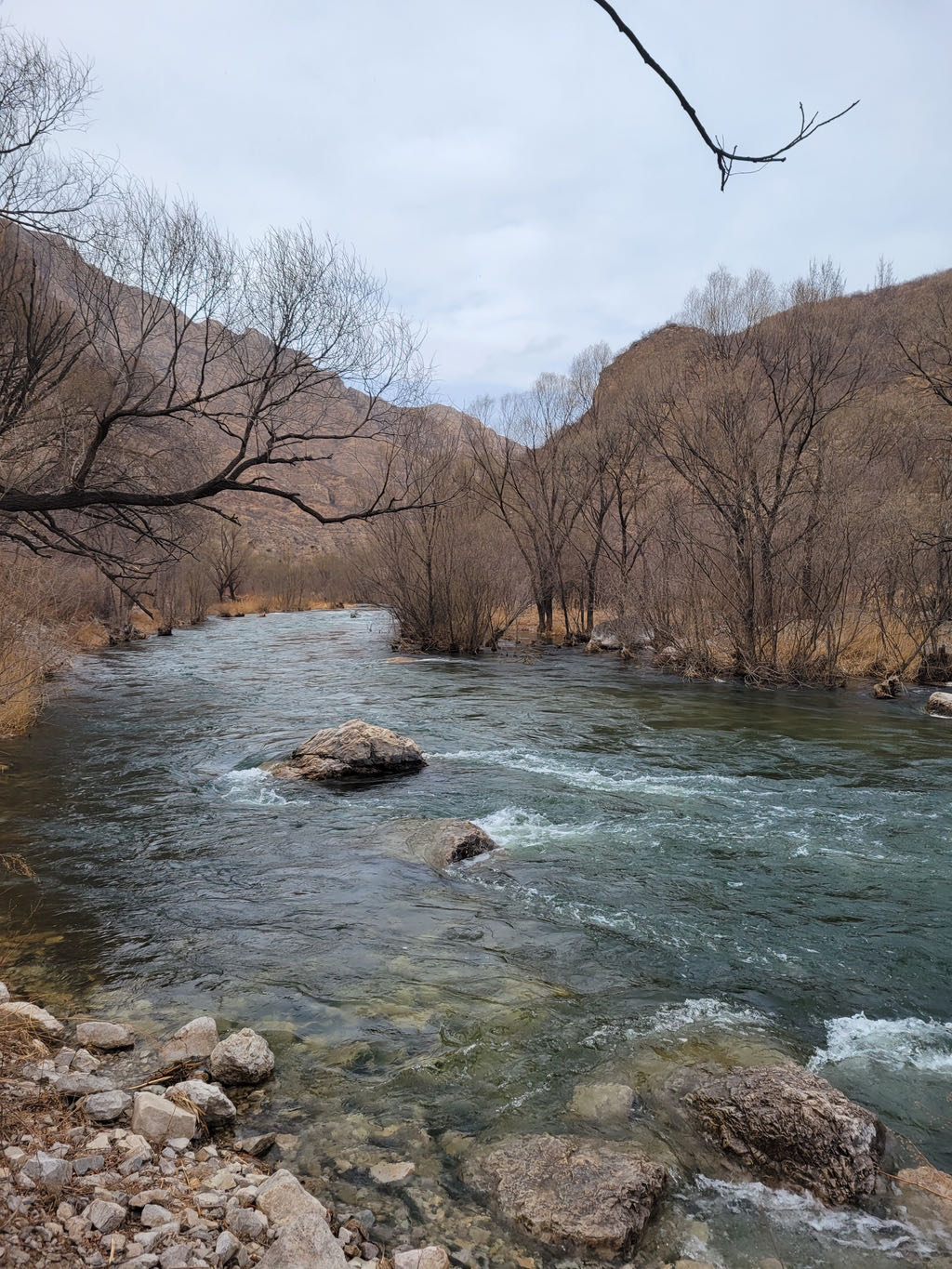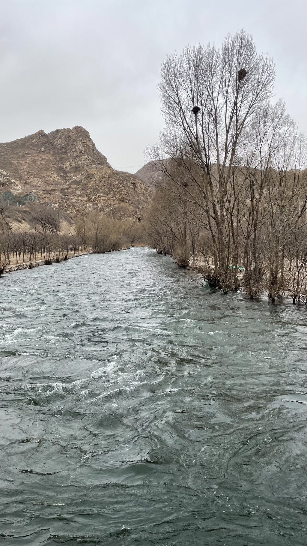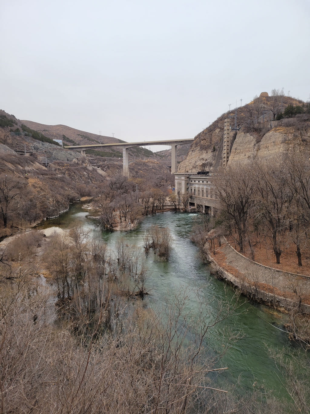 永定河像一条苍龙,冲入群山,这里才是真正的大江峡谷,河谷两侧山崖壁立,山体由石灰岩构成,深度风化,两岸山色干枯,植被稀疏,但是风景一样壮丽.幽州大峡谷是和白河峡谷并称的北京著名的峡谷景观带.