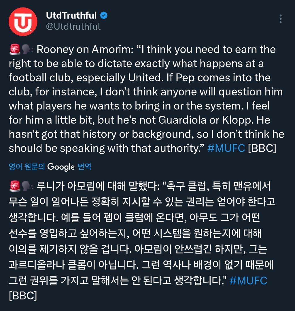 [SNS]웨인 루니 : 아모림이 안타깝지만, 그는 펩이나 클롭처럼 그런말을 할 권위나 배경이 없다. 작성자02년생 맨유팬|작성시간26.01.05|조회수537 목록 댓글 10 글자크기 작게가 글자크기 크게가 https://x.com/i/status/2008093200498520354 다음검색 현재 게시글 추가 기능 열기 북마크 신고 센터로 신고 댓글 댓글 10 댓글쓰기 답글쓰기 댓글 리스트 작성자No.8 BrunoFernandes | 작성시간 26.01.05 팩트리어트 작성자D.BECKHAM | 작성시간 26.01.05 맞는말이지 도대체 뭘 보여줬다고 작성자호랑호랑 | 작성시간 26.01.05 펩, 클롭까지 갈 것도 없이아모림은 랑닉보다도 못하는데 자기가 대단한 감독인 것처럼 착각한거죠 뭐 작성자아름다운맨유야 | 작성시간 26.01.05 당연하죠 어이없음 작성자판 니스텔로이 | 작성시간 26.01.05 뼈 때리네 ㅋㅋㅋㅋ 댓글 전체보기