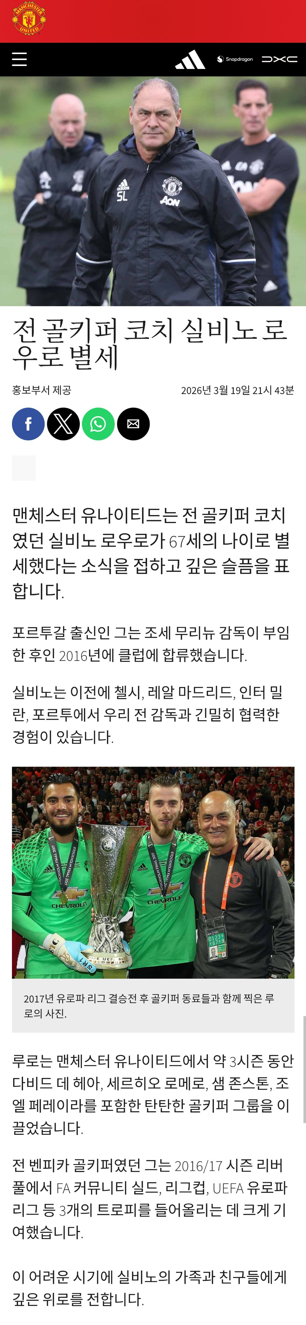 [뉴스]전 GK 코치 실비노, 향년 67세로 별세 작성자02년생 맨유팬|작성시간26.03.22|조회수436 목록 댓글 1 글자크기 작게가 글자크기 크게가 무리뉴 사단때 기억하는 골키퍼 코치 이신데..데헤아도 위문 영상을 올렸네요..... ㅠㅠhttps://www.manutd.com/en/amp/news/detail/club-saddened-by-death-of-former-goalkeeping-coach-silvino-louroClub saddened by death of former goalkeeping coach Silvino Louro | Manchester United여기를 눌러 링크를 확인하세요www.manutd.com 다음검색 현재 게시글 추가 기능 열기 북마크 신고 센터로 신고 댓글 댓글 1 댓글쓰기 답글쓰기 댓글 리스트 작성자붉은생강 | 작성시간 26.03.22 삼가 고인의 명복을 빕니다. 댓글 전체보기