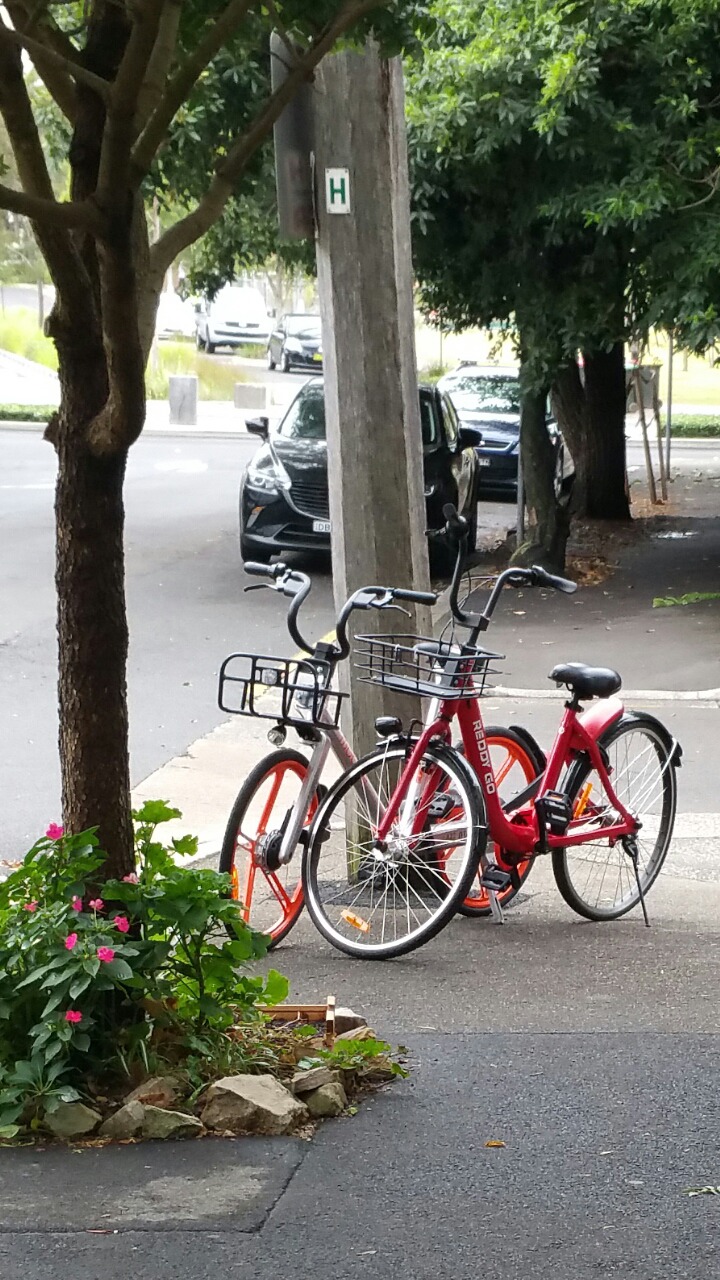 한적한 뒷골목에서도 노란 + 빨강 자전거들이 세워저 있었습니다.