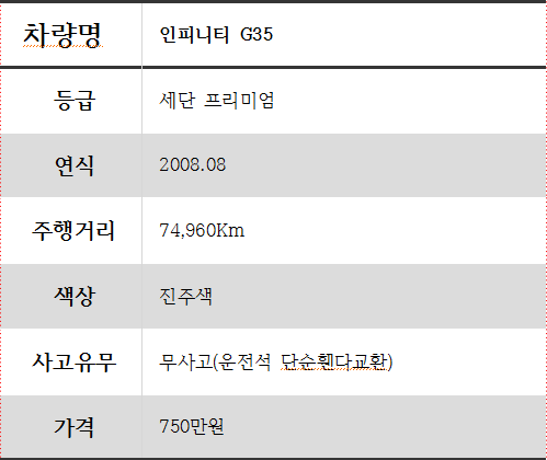인피니티 G35 스포츠형 세단이라는 타이틀과 함께 누구나 부담없이,