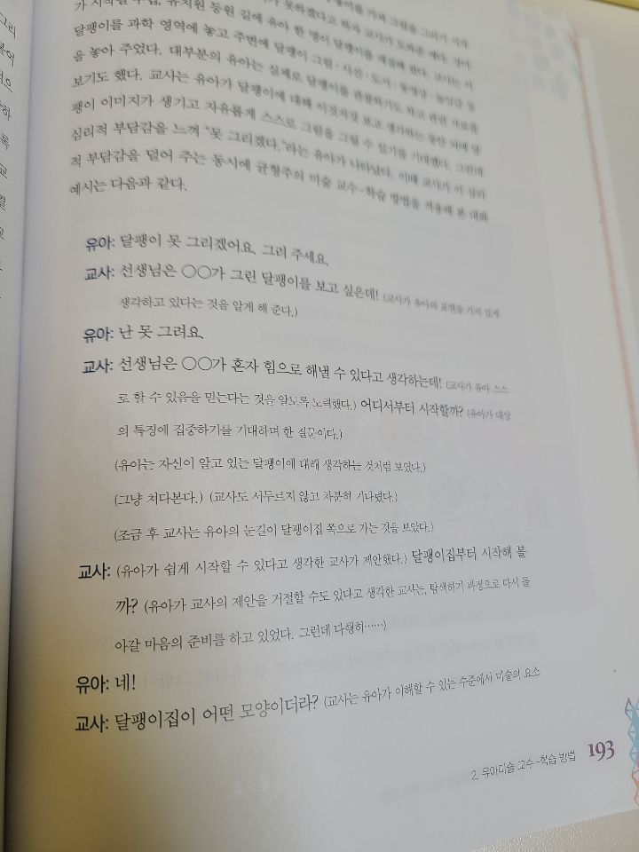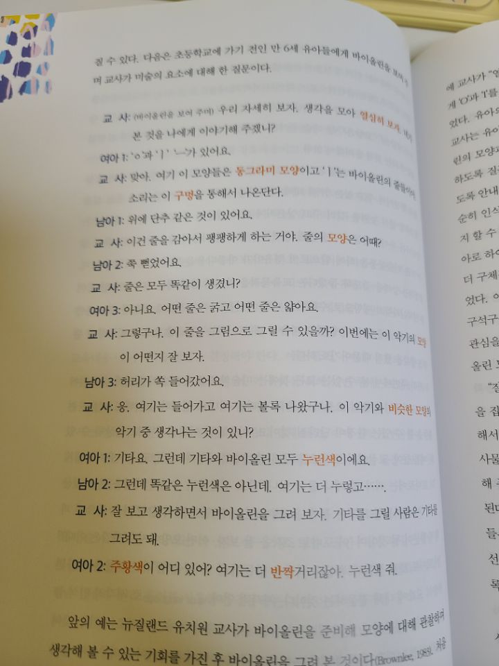 미술공부를 하려고 한 건 아니었는데 어느 부분들을 스캔할까 보다가 생각보다 도움되는 부분이 많아서 그냥 계속 빌려 읽기로 하였다. 그래서 교사의 발문 중심으로 보면서 2차 수업실연에서 내가 에피소드를 구성할 때 쓸 수 있는 말들이 무엇일지 생각하면서 읽었다.